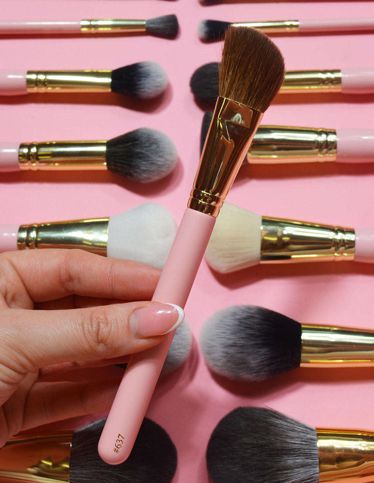 A medium, fluffy angled face brush. Perfect for achieving chiseled, contoured definition to the hollows of the face and warming up the edges of the complexion.