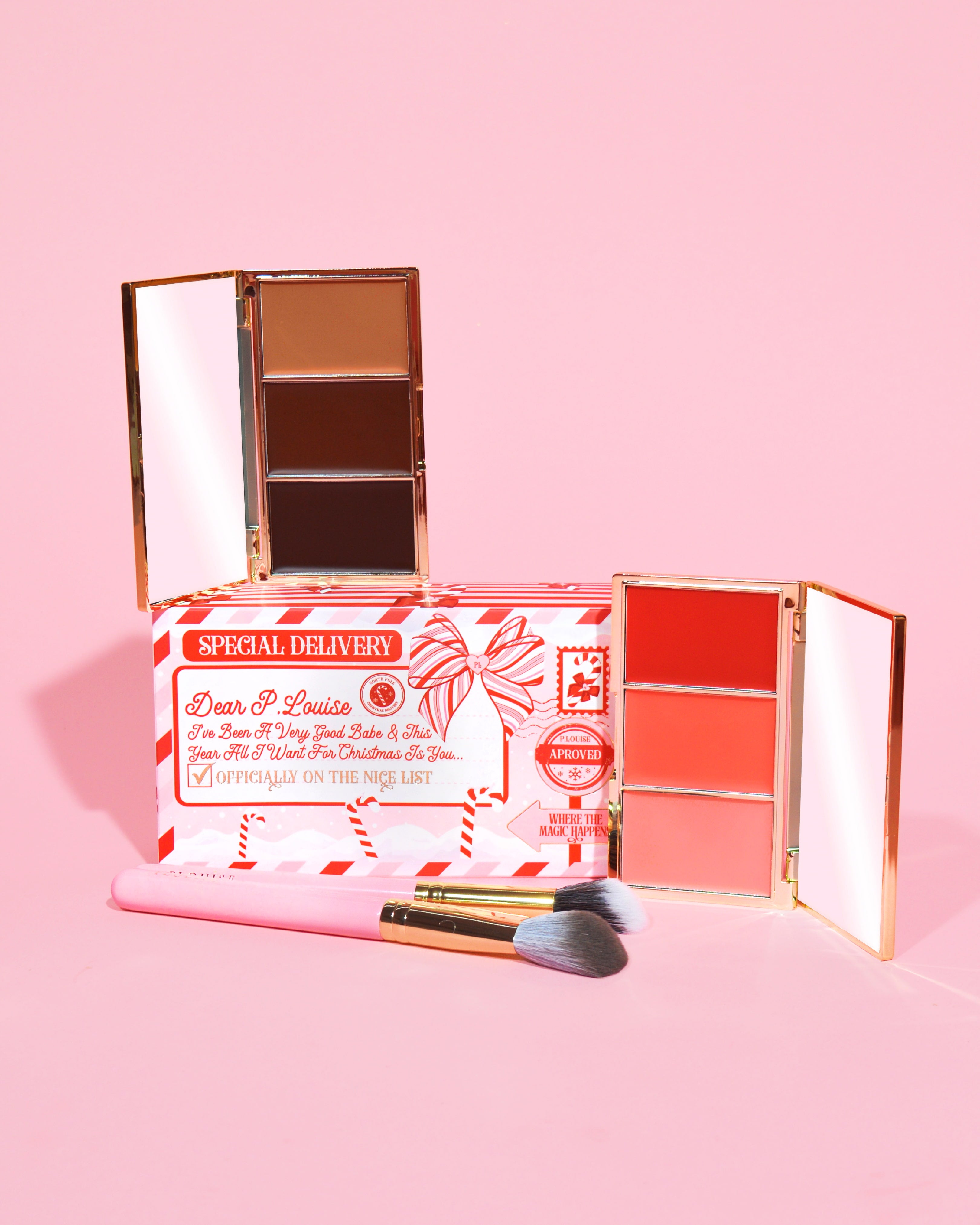 Wrapped up like a letter straight to the North Pole, this packaging is bursting with candy cane stripes, twinkling stars, and just enough holiday magic to make you feel like a true Christmas queen! Whether you’re heading to a cosy winter party or staying home by the fire, this kit is your ticket to looking extra nice (or a little bit naughty).