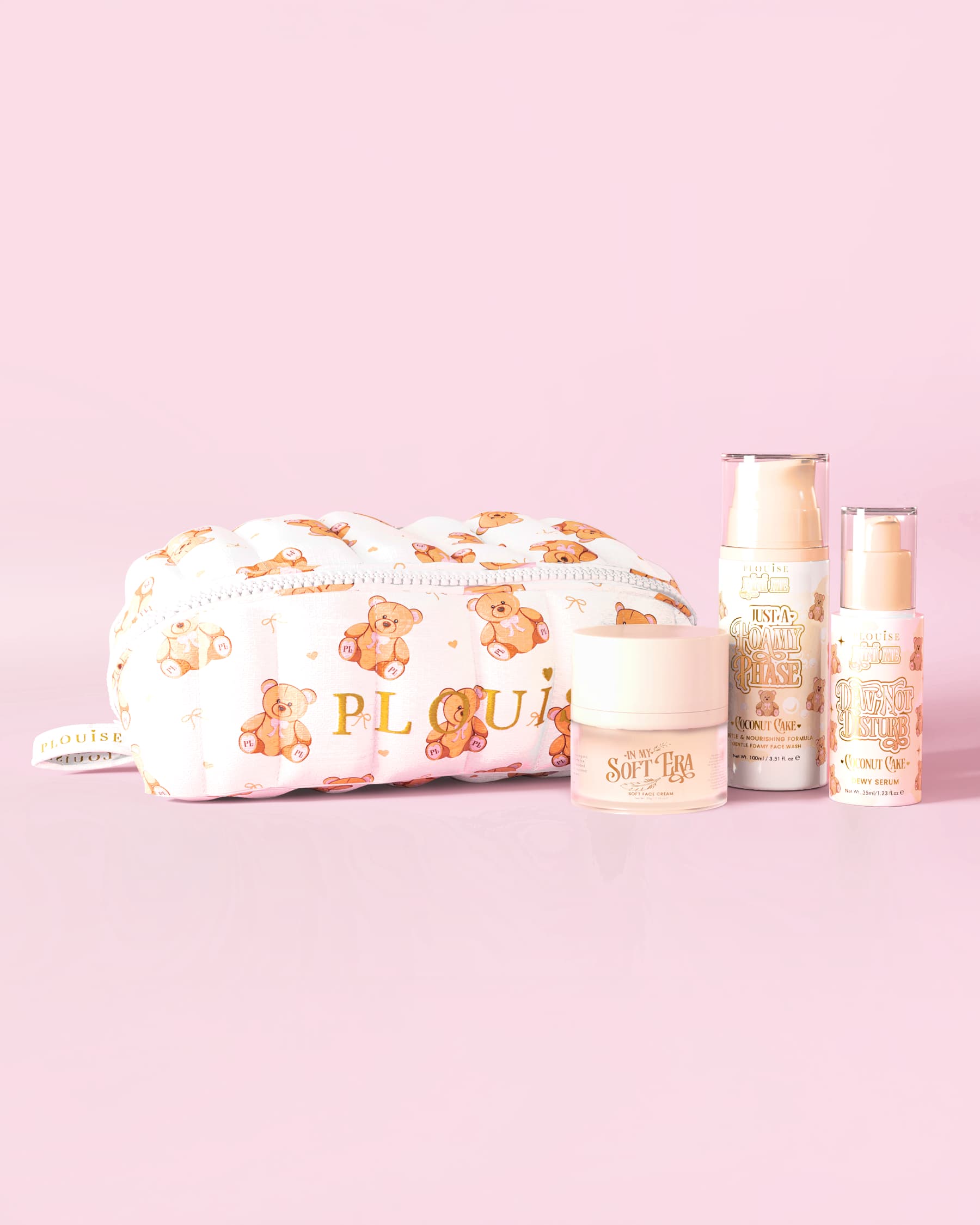 Step into your soft era with the P.Louise Soft As Teddy Trio, a teddy-approved edit designed to drench your lips, hair, and skin in comfort, hydration, and Coconut Cake sweetness.